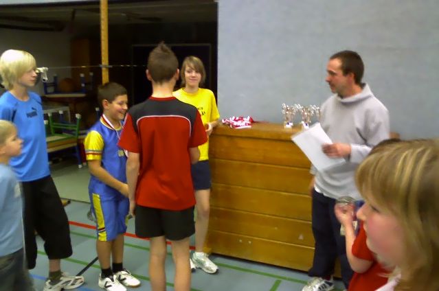 Da der heutige Spieltag wegen den schlechten Wetterbedingungen fast überall ausgefallen ist, nahmen wir die Gelegenheit beim Schopf und fuhren zu unserem Badmintonverein nach Erkelenz. Dort wurde eine sehr gut organisierte offene Stadtmeisterschaft im Badmintonjugendbereich ausgerichtet. Das Organisationsteam um Uwe Blau und Rene Steinwartz hatten ein tolles Event auf die Beine gestellt, das allen Teilnehmern und Zuschauern große Freude bereitete. Und wenn man dann auch noch als Neuling einen solchen Titel wie Pierre erzielt, dann ist die Freude doppelt groß. Einfach nur Spiiitttzzzeee!!!