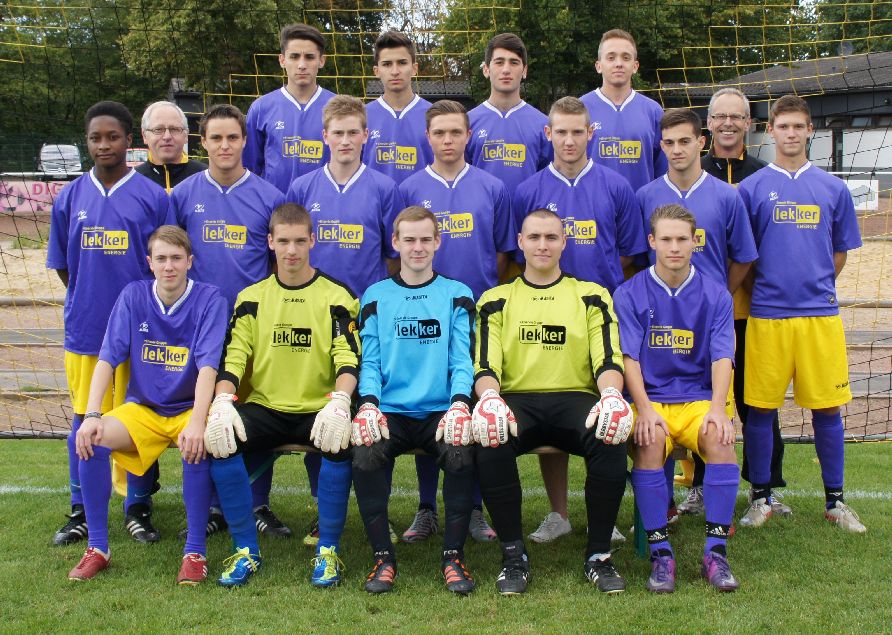 Mitte v.li.: Leopold Djion, David Jennissen, Jens Schwiertz, Tobias Claßen, Dominik Hahn, Valdrin Recica, Dustin Kaniecki